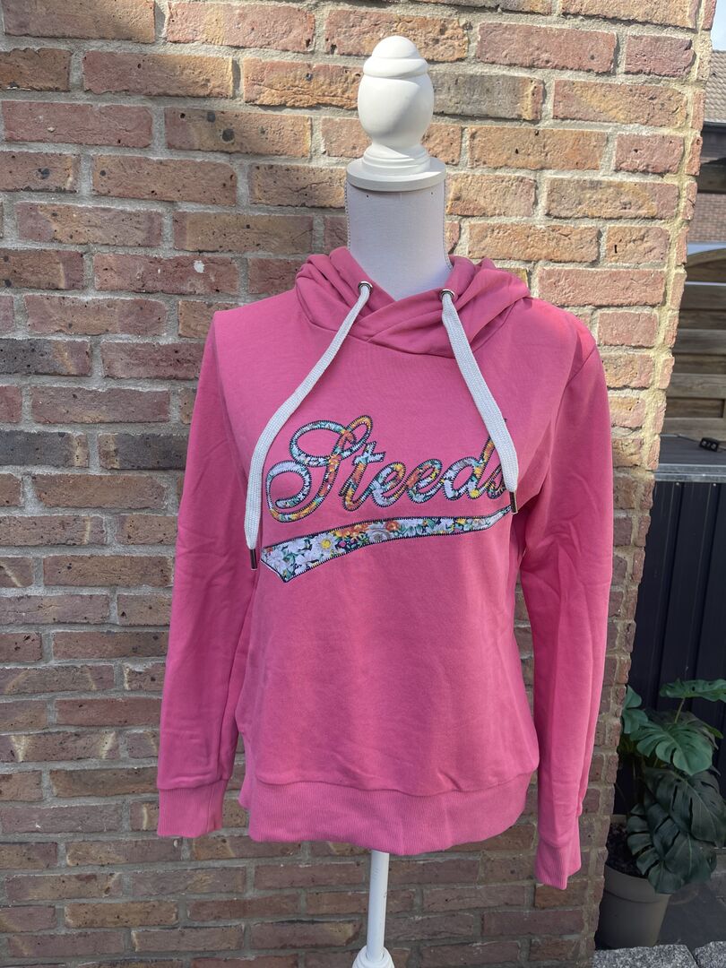 Sweter Steeds w kolorze różowym - Sprzedam różowy sweter firmy steeds z kwiatowym wzorem. Sweter jest w rozmiarze M. Jest w dobrym stanie, ale używany i dlatego może nosić ślady użytkowania.