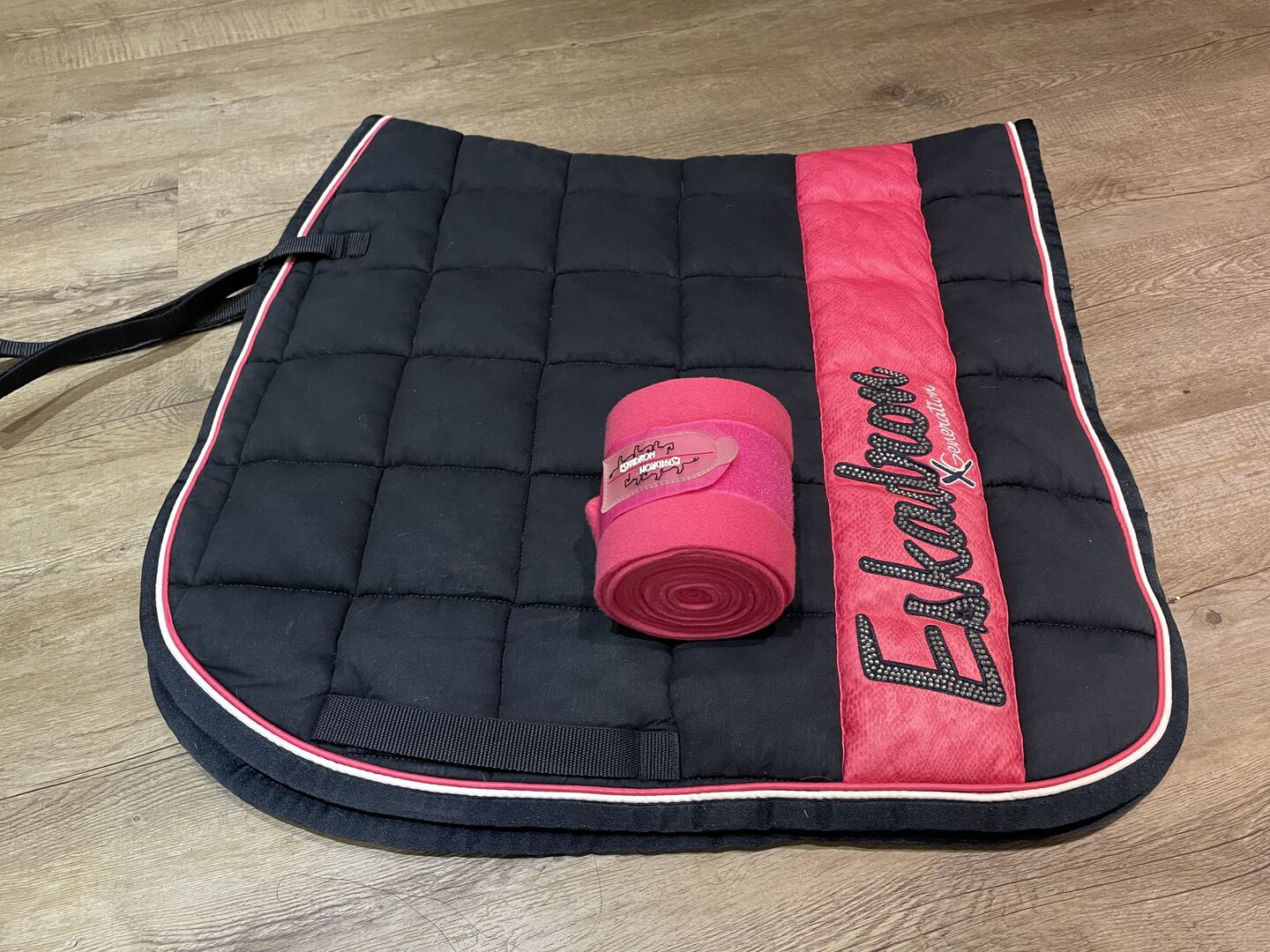 Świetna podkładka pod siodło Eskadron (Big Square) + pasujące bandaże polarowe! - Sprzedam podkładkę pod siodło ujeżdżeniowe Eskadron + pasujące bandaże polarowe z serii Next Generation 2016 (edycja limitowana).