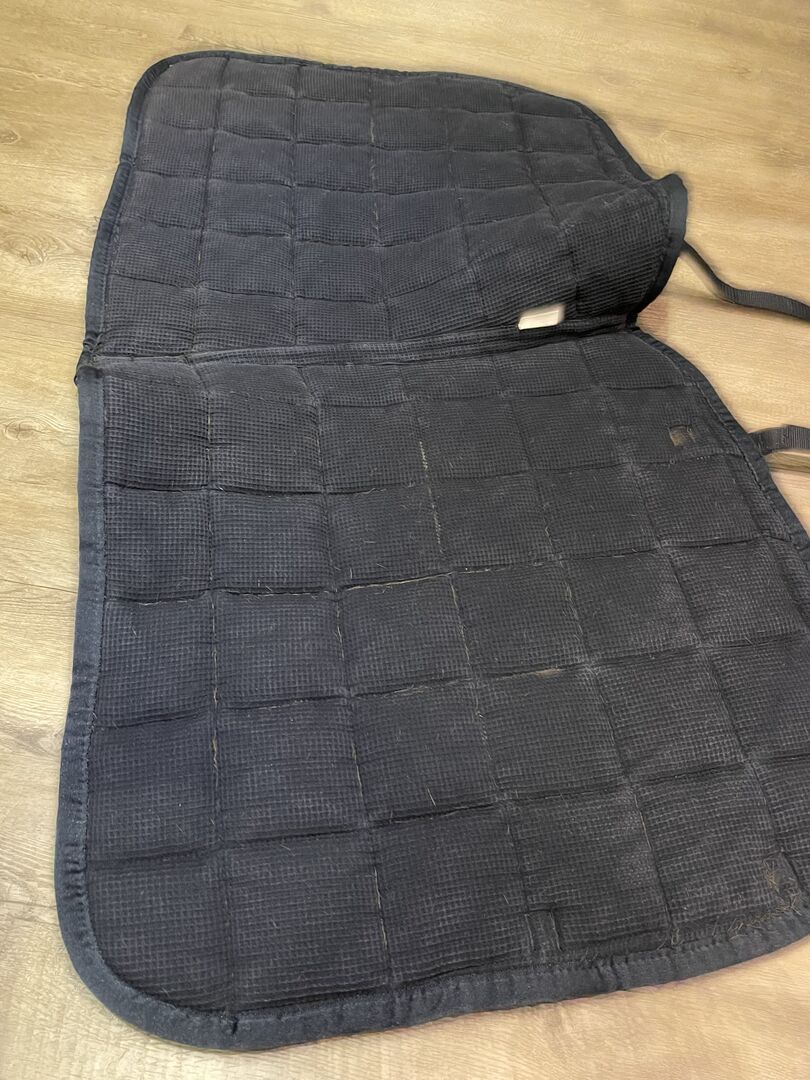 Podkładka pod siodło Big Square - Kolor: granatowy - Rozmiar: DL - charakterystyczne pionowe paski po obu stronach - Napis Eskadron Crystal po lewej stronie - tylko kilka razy był pod siodłem