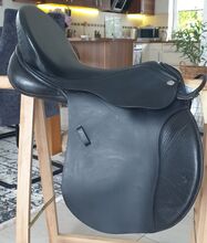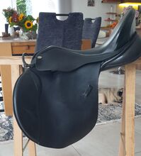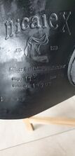 Świetne siodło skokowe, Nicalex, 17,5 jak Passier - Super wygodne siodło skokowe na sprzedaż z kolońskiego zakładu rymarskiego Nicalex. Siodło jest w kolorze głębokiej czerni i wyściełane miękko jak masło. Dopasowane do normalnego konia ciepłokrwistego, ze średnim podbiciem i lekką krzywizną w tylnej części. Mini dziwactwo na siedzeniu. Sprzedaję tylko dlatego, że mój koń nie może już skakać.