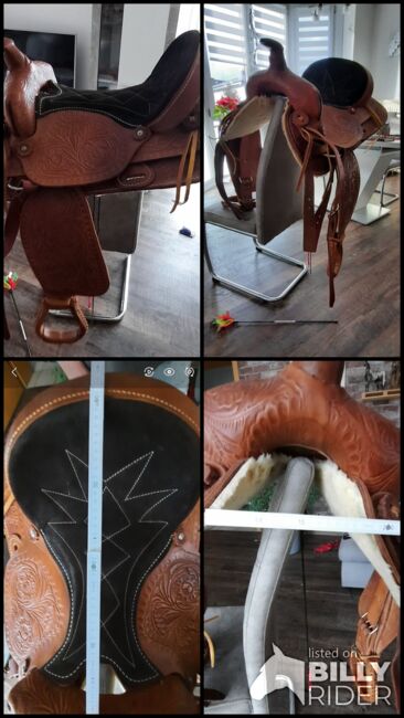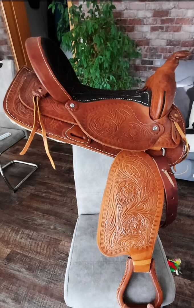 Świetne siodło westernowe ze znakiem jakości -Nowe- - Wyjątkowa okazja, ze względu na rezygnację z jazdy konnej !!! Pierwszej klasy nowe siodło western z bardzo ładnymi znakami rozpoznawczymi, było na koniu tylko do przymiarki. Siedzisko: ok. 40cm Szerokość w kłębie: ok. 20cm Długość całkowita: ok. 60cm NP: 650 € FB: 400 € plus koszty wysyłki Whatsapp 0151-68504384 Sprzedaż prywatna bez gwarancji Odbiór byłby optymalny plus 25 € kosztów wysyłki