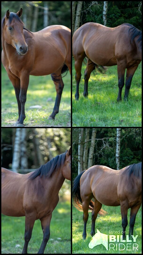 Świetny koń do jazdy konnej / wszechstronny prospekt - Lokalizacja: 95686 Fichtelberg Roche Dee Grande - ten piękny ogier rasy Quarter Horse, urodzony 23.04.2022 r., we wspaniałym kolorze gniadym, ma osiągnąć ostateczny wzrost ok. 150 cm. Jest dobrze rozwinięty, prawidłowo zbudowany, silny i zwarty, z mocnymi stawami i zdrowy. Szczepiony i odrobaczany stosownie do wieku, regularnie prezentowany kowalowi i dobrze dba o kopyta. Cały rok spędza pasąc się w otwartej stajni w stadzie. Rocho ma bardzo spokojny charakter, jest słodki, przytulaśny, towarzyski i ma świetny umysł. Dzięki doskonałemu rodowodowi z liniami reining/ranch horse/all-round jest obiecującym koniem na zawody, a także świetnym partnerem do rekreacji. Jego ojcem jest z powodzeniem pokazywany Lil Dunit Smart: czempion Futurity i Derby, a także wiceczempion Open i Non Pro (LTE NRHA USA 33 560 dolarów, NRHA Niemcy 10 180 euro). Matka Rocho to wnuczka Sonny Dee Bar.