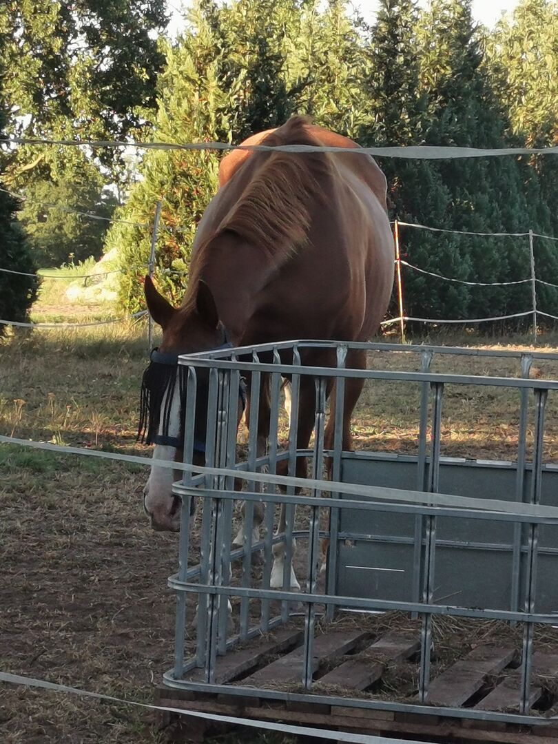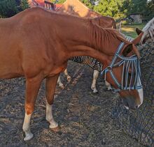 Latem lub gdy jest bardzo wietrznie, może potrzebować grzywki na muchy (zdejmuje maski, jest w nich naprawdę dobry) i był również sprawdzany przez weterynarza, nic nie znaleziono, chociaż w tym roku było naprawdę dobrze. Ale w zeszłym roku wszystko było w porządku i prawie ich nie potrzebował.