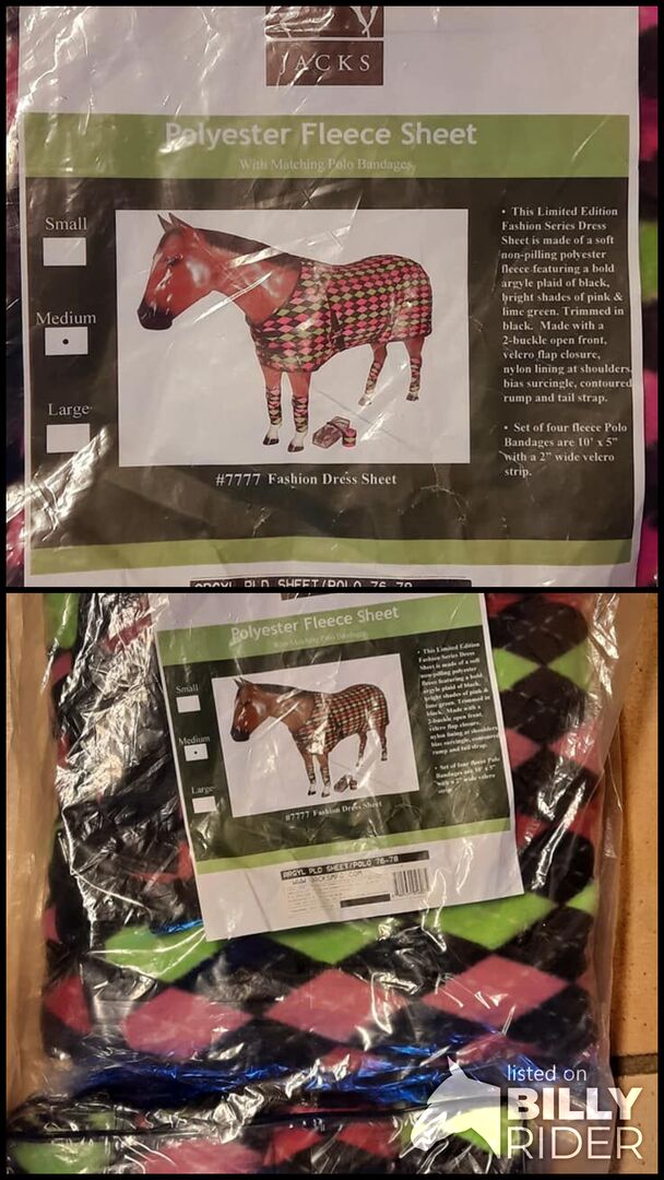 Świetny nowy zestaw dres/polo 145 cm/76-78 - Nowy zestaw polaru poliestrowego, z wyściółką na kłębie, pasem brzusznym i crupperem, anatomiczny krój, nylonowa podszewka na ramionach pasujące bandaże polarowe M kolory: różowy, jabłkowo-zielony, czarny Wyprodukowane przez JACK USA; edycja limitowana, już niedostępne oba w oryginalnym opakowaniu, import z USA