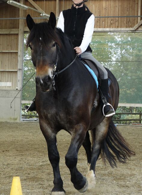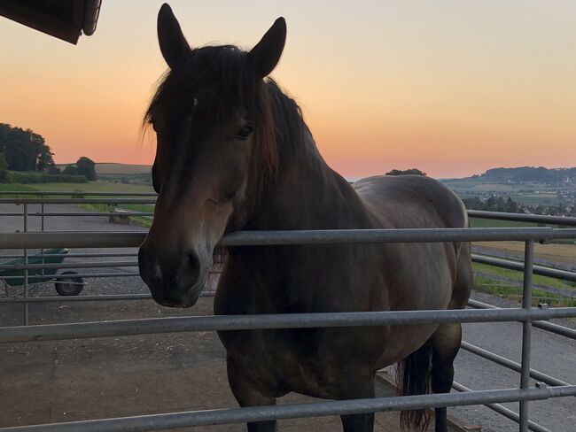 Świetny partner rekreacyjny - Norbu trafił do mnie na surowo w wieku 3,5 roku, został zajeżdżony w wieku 6 lat i od tego czasu jest bardzo niezawodnym i zmotywowanym partnerem do rekreacji. Jest zaangażowany i chętny do nauki na arenie (ma tendencję do bycia kujonem), zarówno w ręku, na lonży, jak i pod siodłem. Świetnie nadaje się do samodzielnej jazdy i może również odkrywać nieznane tereny. Niezależnie od tego, czy są to przejazdy kolejowe, metro, ciężkie pojazdy itp., jest zorientowany na opanowanie jeźdźca i nie pozwala, by przeszkadzały mu "duchy", które inne konie widzą, gdy jest w grupie. Jest świetnym wsparciem dla niepewnych koni wierzchowych. Nie jest zajeżdżony i nie zna pracy na wyciągnięcie ręki. Mogę sobie jednak wyobrazić, że mógłby wykonywać obie te czynności. Zna się "tylko" na pielęgnacji kopyt i butach do kopyt, ponieważ nigdy nie nosił butów ani butów samoprzylepnych. Kilka lat temu miał sarkoida pod lewym uchem, który całkowicie zniknął po terapii AW5. Prawdziwe imię Norbu to Wasti Nero, jego dziadkiem był Wald Nero. Jeśli masz jakieś pytania, skontaktuj się ze mną, odpowiem tak szybko, jak to możliwe.