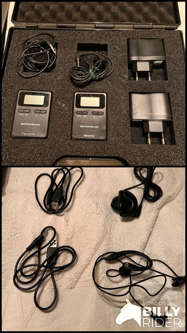 - Zestaw Equiteacher wraz z etui - Equiteacher jest całkowicie cyfrowy, zarówno w części dźwiękowej, jak i częstotliwościowej - Equiteacher to bezprzewodowy system z jednym nadajnikiem i jednym odbiornikiem - Equiteacher zapewnia ciągłe połączenie (bez opóźnień, szumów i zakłóceń) - Equiteacher posiada studyjną jakość dźwięku. - Equiteacher ma zasięg, który jest więcej niż wystarczający dla każdej areny lub ringu zawodów do 300 metrów. - Equiteacher jest bardzo mały (6,5 x 5 x 1,7 cm) i waży tylko 49 gramów wraz z baterią. - Equiteacher posiada przyciski z "blokadą", co oznacza, że nie można go przypadkowo przesunąć - Equiteacher posiada klips mocujący do spodni lub kurtki. - Equiteacher można również łatwo wsunąć do kieszeni ze względu na jego kompaktową konstrukcję. - Equiteacher nie ma wystającej anteny, jest ona zintegrowana z samym urządzeniem. - Equiteacher posiada baterię litową wielokrotnego ładowania. - Equiteacher może być ładowany za pomocą dowolnej ładowarki USB, ładowarki wchodzą w zakres dostawy. - Equiteacher posiada wyświetlacz do odczytu głośności, wyboru kanału i wskaźnik niskiego poziomu baterii - Equiteacher działa w paśmie wolnym od licencji (900 MHz) i może być używany w całej Europie - Equiteacher jest dostarczany z mikrofonem, słuchawkami i akumulatorem. - Equiteacher posiada 40 niezależnych kanałów umożliwiających korzystanie z wielu zestawów. - Equiteacher posiada uniwersalne złącza dla wszystkich typów słuchawek (gniazdo 3,5) i mikrofonów. - Użyj Equiteacher, aby ćwiczyć freestyle poprzez wejście MP3/CD. - Bezprzewodowy system do nauki jazdy konnej.