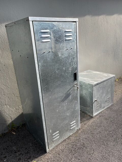 Szafka siodłowa duża z szafką górną - Sprzedam bardzo dobrze zachowaną dużą szafę siodłową wykonaną z blachy stalowej, 150 x 60 x 60 cm, wraz z górną szafką 60 x 60 x 60 cm. Duża szafka pod siodło ma półkę, dwa uchwyty na siodło i dwa uchwyty na uzdy oraz dodatkowy uchwyt na plony. Górna szafka ma jeden schowek. Obie szafki są zamykane.