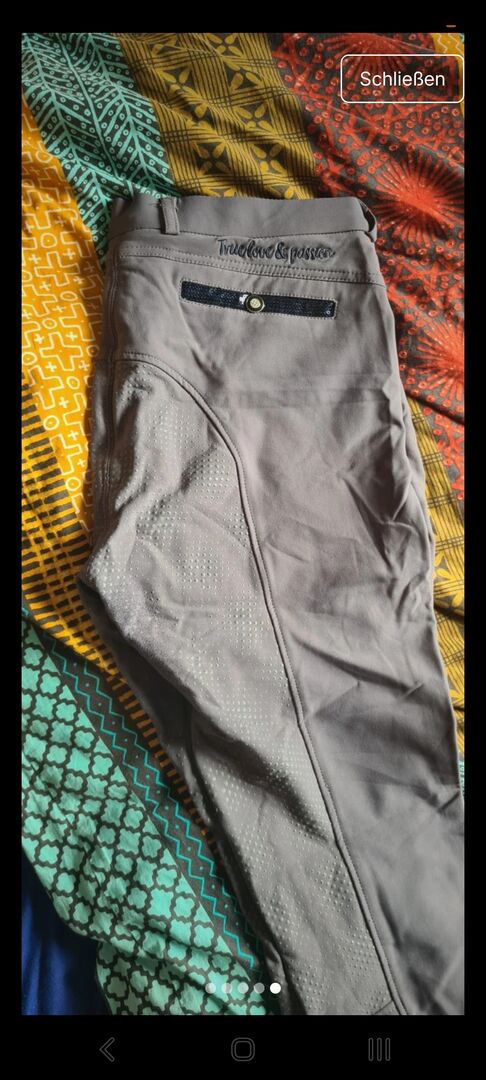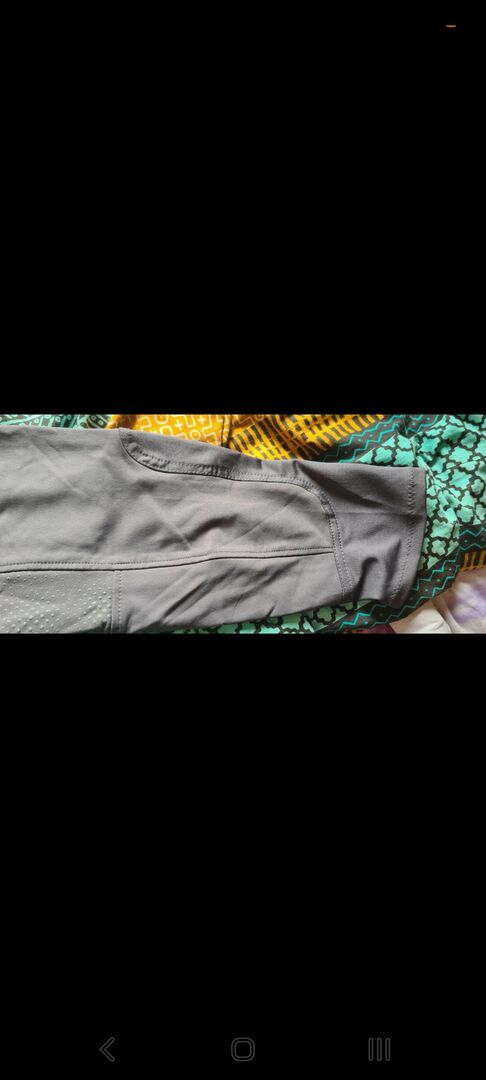 Szare spodnie jeździeckie - Bardzo wygodne, dobrze używane bryczesy świetnej marki 4Riders. Jak widać na zdjęciu, powłoka na siedzeniu jest trochę zużyta. Poza tym stan bardzo dobry!