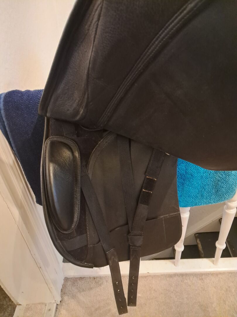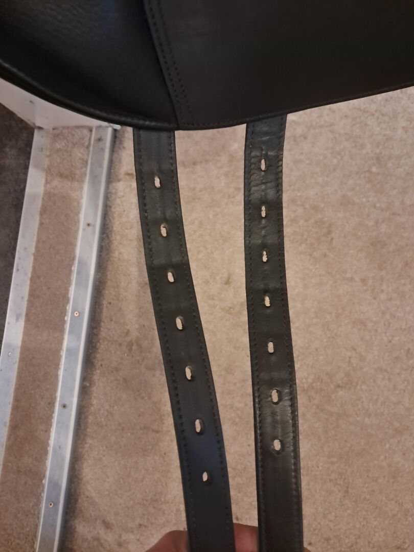 Szerokie siodełko Bates - Siodło używane, tylko 1,5 roku na klaczy zimnokrwistej. Biały podogonie. Lewa klapa siodła ma ślady użytkowania z powodu zamka błyskawicznego (patrz zdjęcia). Przechowywane w suchym miejscu w temperaturze pokojowej. Nowa cena wynosiła 2100€. O więcej zdjęć proszę pytać