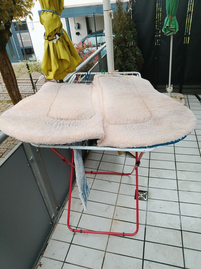 szlak westernowy - Na sprzedaż superflex hide pad Contoured Trail. Dla koni z problemami z grzbietem i stawami skokowymi Grubość 2,0 cm, długość 74 cm z 3,5 cm wzmocnioną nogą Anatomicznie ukształtowany kanał kręgowy, pianka z pamięcią kształtu, wzmocniona wyściółka w okolicy siodła, prawdziwa wełna futerkowa od spodu polar, mało używany