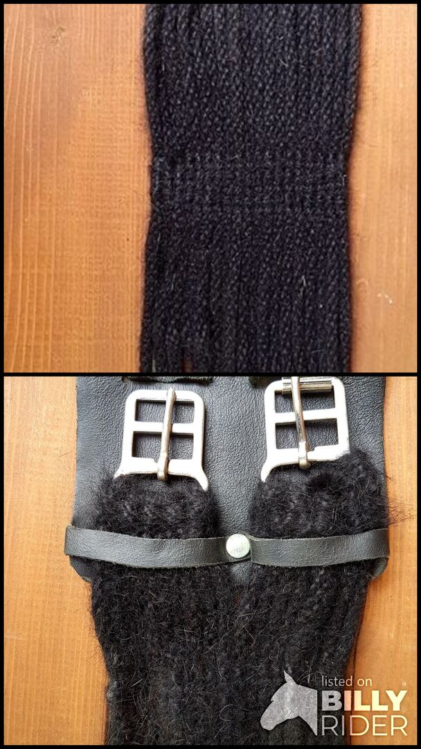 Sznurkowy pas moherowy 70cm - Czarny pasek ze sznurka moherowego (krótki pasek) wraz ze skórzaną osłoną klamry, 70 cm.