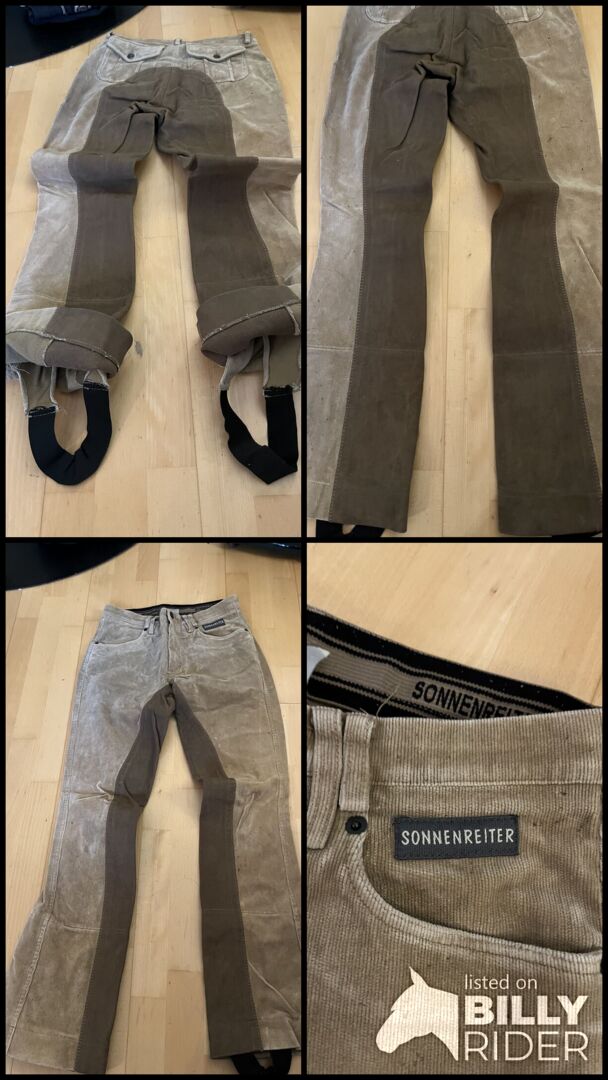 Sztruksowe bryczesy Jodpur - Wykończenie z imitacji skóry jest nadal nieskazitelne dzięki świetnemu wykonaniu Sonnenreiter, niestety na sztruksie są małe czarne kropki, które nie wyszły nawet podczas prania.