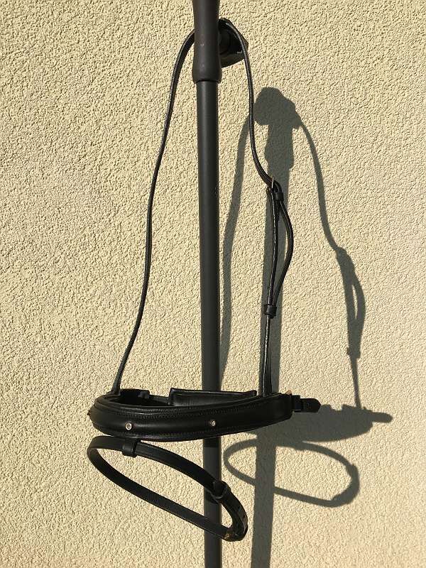 Szwedzki Caveson, opaska na nos, COB, czarne złoto - Nigdy nieużywany, miękki, wyściełany szwedzki pasek na nos z blokadą w rozmiarze Cob do sprzedania. Okucia są w kolorze złotym, a na nosku znajdują się 3 srebrne dżetony, które są również osadzone w złocie, jako mały element przyciągający wzrok ;) . plus wysyłka