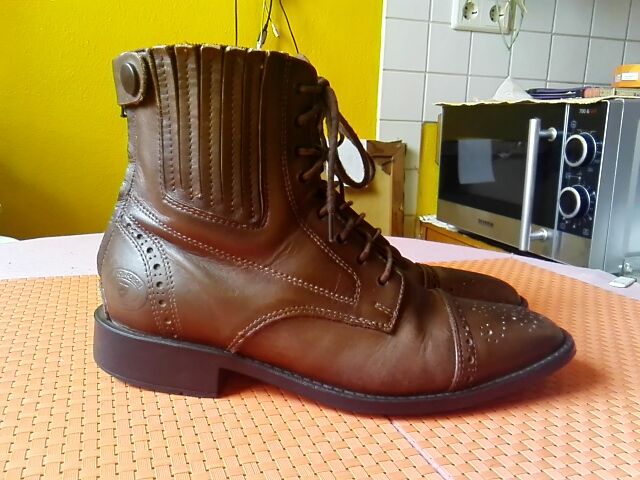 Szykowne jeździeckie botki do kostki jodpur rozmiar 37 skórzane brązowe z perforowanym wzorem - Bardzo eleganckie jeździeckie buty za kostkę w modnym brązowym kolorze. Buty nigdy nie były w stajni. Były noszone tylko kilka razy na ulicy. Marka Black Forest z Loesdau. NP 99.95 Prawdziwa skóra wewnątrz i na zewnątrz, z neapolitańskim wzorem dziurki. Rozmiar 37, również pasują tak. Stan widoczny na wielu zdjęciach. Gospodarstwo domowe dla niepalących, sprzedaż prywatna. Możliwa płatność przez Paypal. Wysyłka przez Hermes.