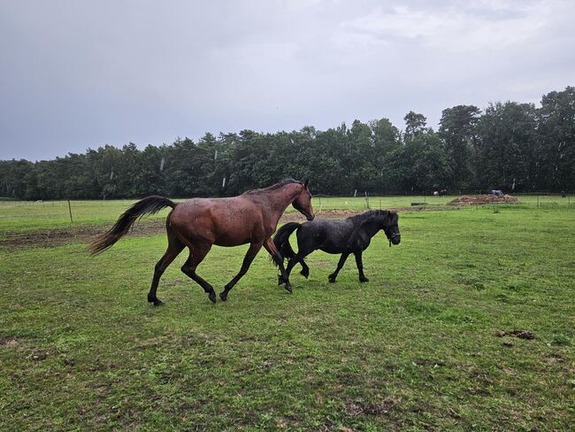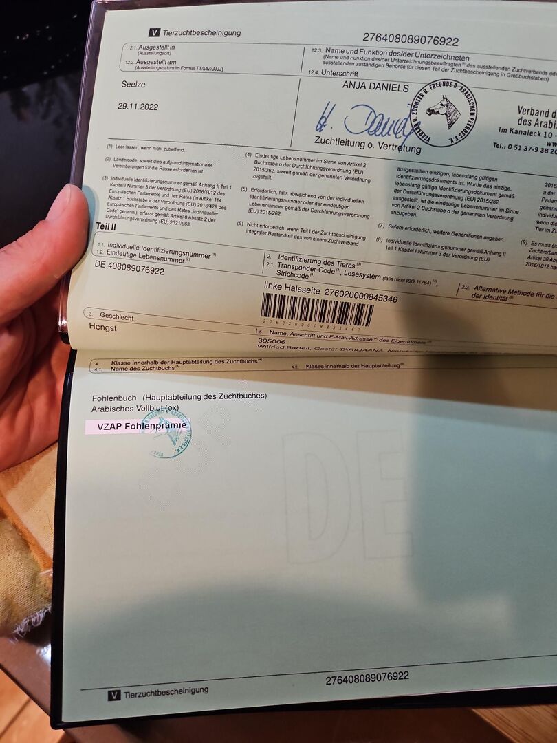 Schahin urodził się w 2022 roku i od momentu odsadzenia biegał w dużej mieszanej grupie ogierów i wałachów. Wszystko, od ogierów szetlandzkich po ogiery starej krwi, biega tam razem. Przez cały rok przebywa na zewnątrz na dużym obszarze, ale ma codzienny kontakt z ludźmi, w tym z paszą mineralną, pielęgnacją kopyt i wszystkim, co się z tym wiąże. Jest więc przyzwyczajony do psów i bawiących się dzieci. Oczywiście kowal, weterynarz, rozczyszczanie.