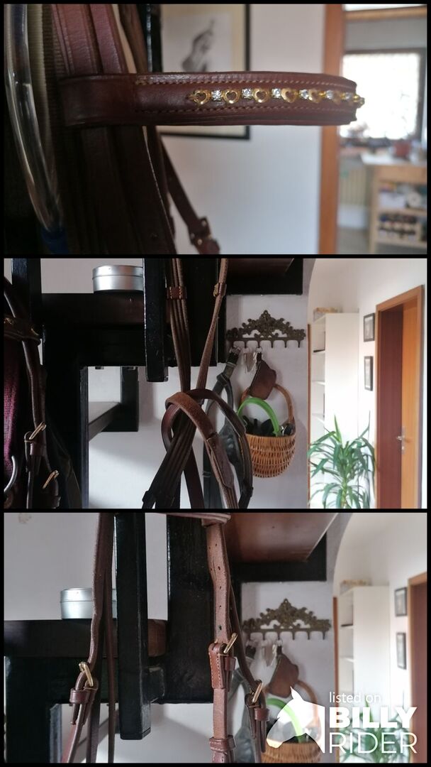 Taboret dla kucyków - Piękny wędzidło dla kucyków z pasującymi sznurami w kolorze koniakowym. Snaffle jest odpowiedni dla małej głowy kuca. W paskach policzkowych wykonano dodatkowy otwór. Koniki w dobrym stanie. Możliwość wysyłki na koszt odbiorcy. Sprzedaż prywatna, dlatego nie ma możliwości zwrotu ani gwarancji.