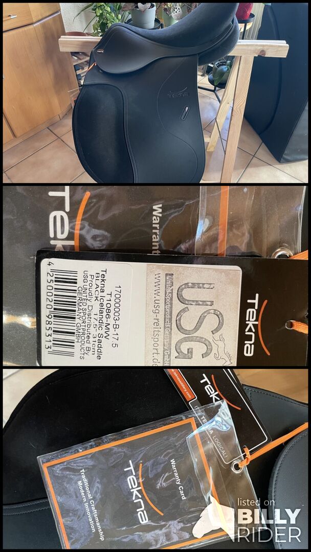 Tekna Icelandic 17,5 komorowa MW - Zupełnie nowe (ale starszy model) islandzkie siodełko. Niestety był to zły zakup, ponieważ nie można wymienić płyty wpustowej. Jednak regulowane przez rymarza. Jednak nie chciałem tego, miałem już wymienne przełyki w domu, a potem kupiłem model, który można było wymienić. W mieszkaniu zawsze było sucho. Na zdjęciach tylko trochę zakurzony...