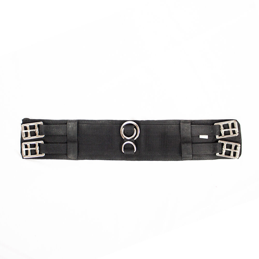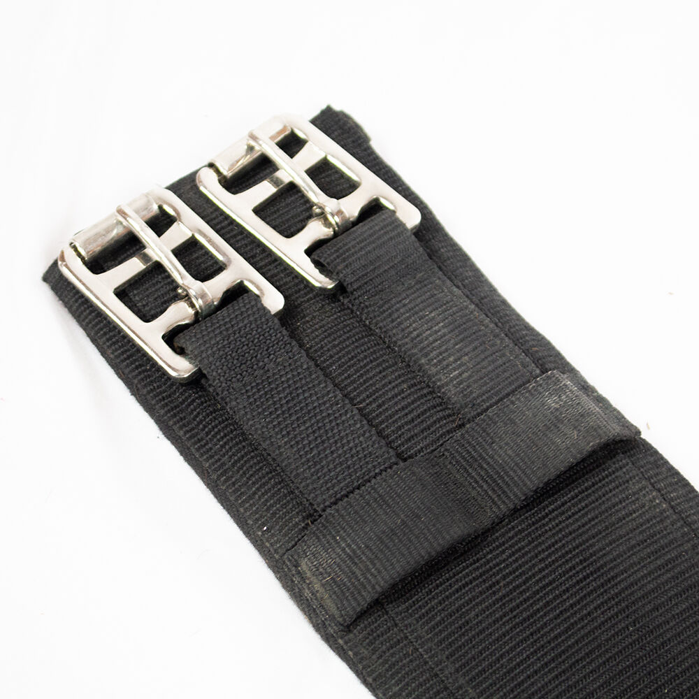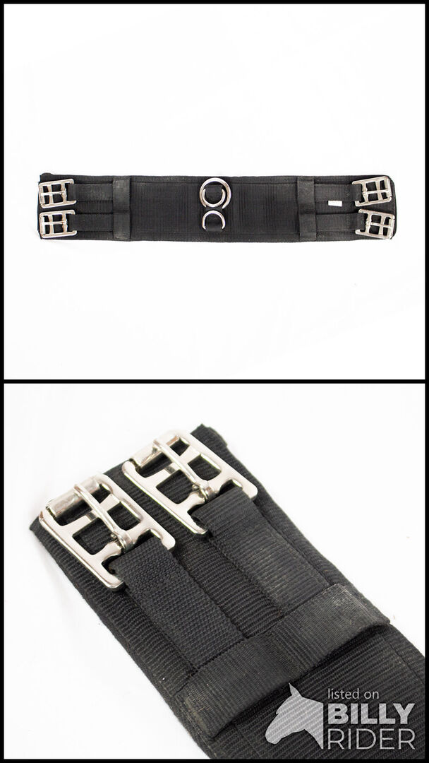 Tkanina Krótki obwód 55 cm czarna - Ten materiałowy pas w kolorze czarnym o długości 55 cm dobrze pasuje na kucyki Shetty i inne małe kucyki. Nadaje się zarówno do jazdy konnej, jak i do lonżowania, a na środku ma dodatkowe metalowe pierścienie, do których można przymocować dodatkowe lejce. Pas był prawie nieużywany, dlatego jest w doskonałym stanie i nie ma żadnych wad. Jest on czarny i ma srebrne okucia. To the seller's offerlaunch