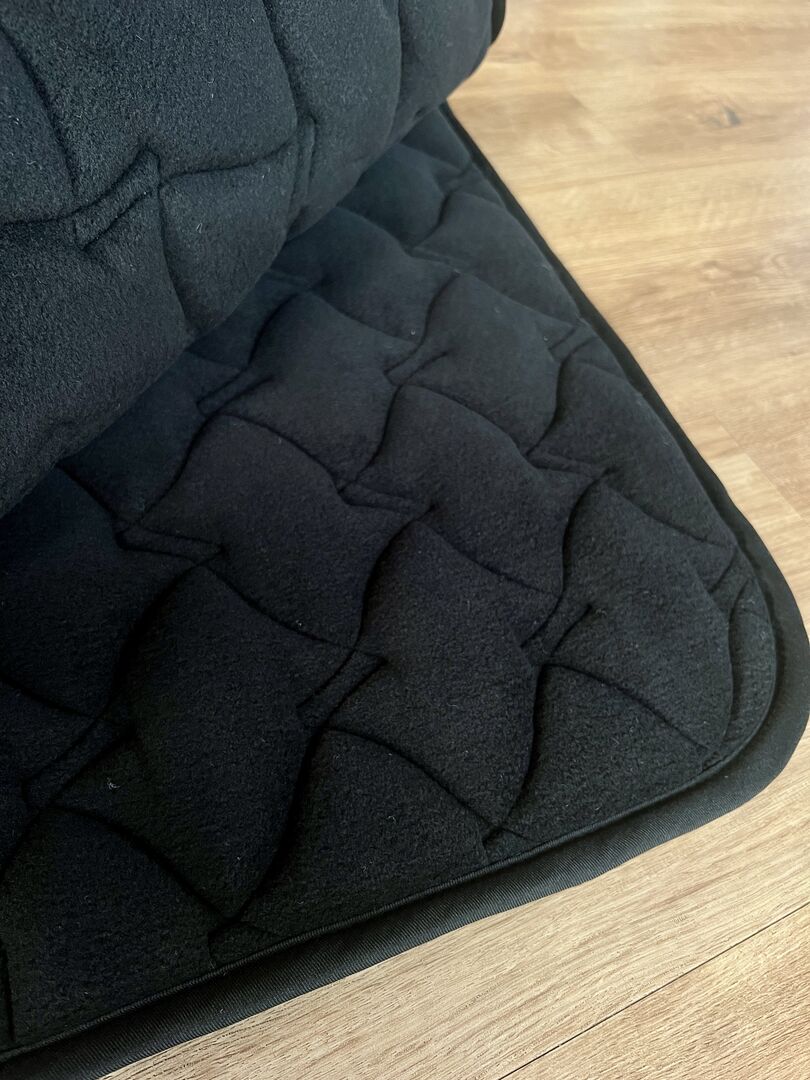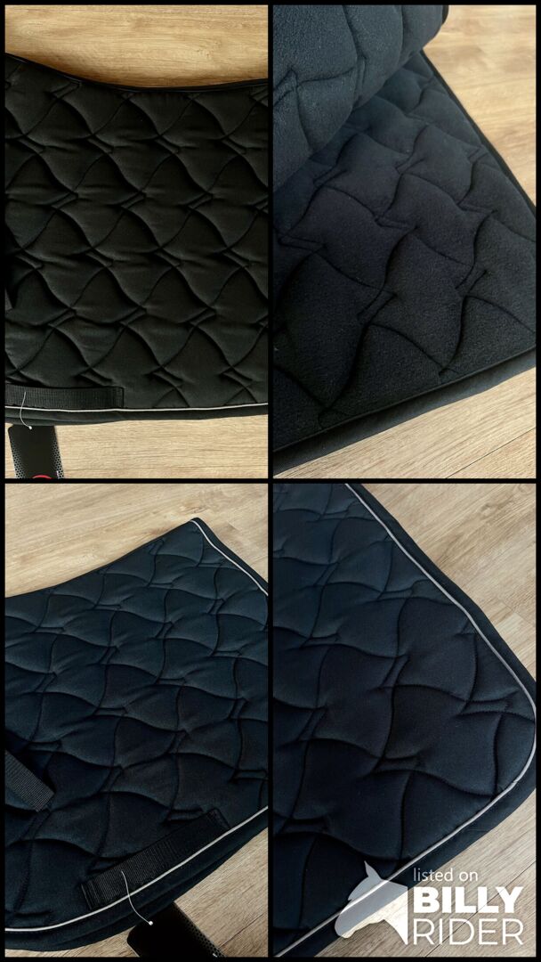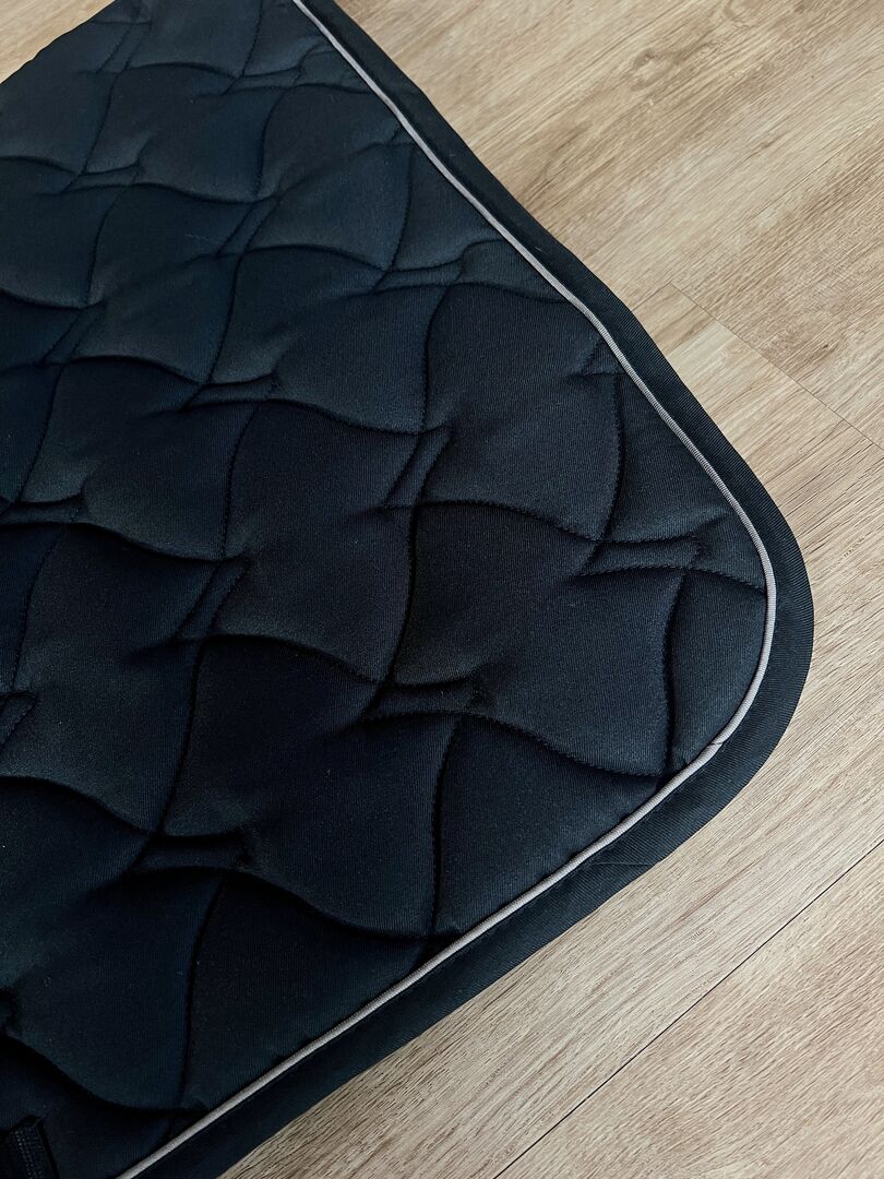 Tkanina pod siodło HKM - Cassandra - nowa - VS - czarno-szara tkanina pod siodło - Sprzedam zupełnie nową podkładkę pod siodło HKM "Cassandra" do siodeł ujeżdżeniowych w kolorze czarno-szarym.