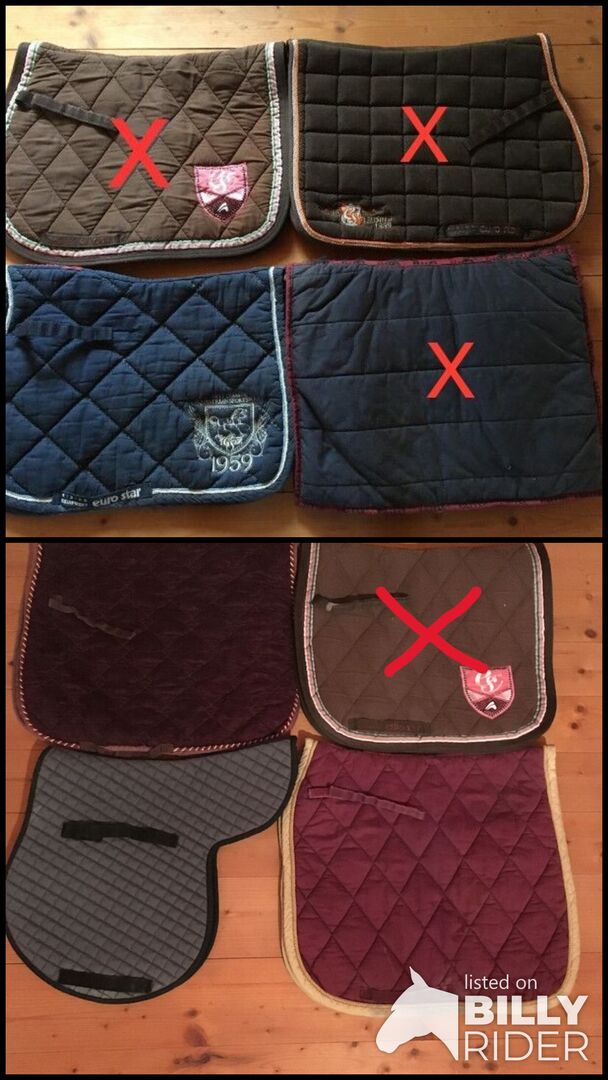 Tkanina siodłowa / Saddlecloth - Różne podkładki pod siodła i ściereczki do siodeł w różnych wzorach, cena detaliczna 5,00 € za sztukę (bez wysyłki). Pierwotnie pełnowymiarowe, nieco się skurczyły z powodu prania, ale nadal pasują do nieco mniejszych siodeł.