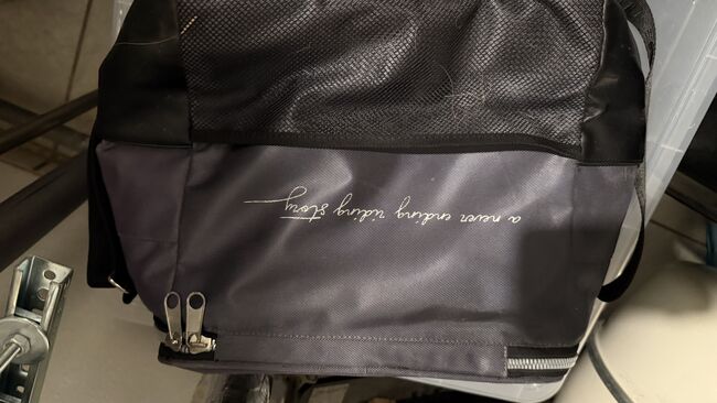 Torba pielęgnacyjna Uniquhorse szara - Sprzedam worek do czyszczenia marki Uniquhorse w kolorze szarym. Nie posiada żadnych wad ograniczających użytkowanie worka, jedynie kilka śladów zużycia. Przez długi czas leżał w piwnicy.