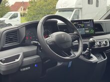 2. rząd siedzeń w nadwoziu z 3 dodatkowymi zarejestrowanymi miejscami, łatwa w pielęgnacji, dwukolorowa tapicerka z szarej tkaniny. Kanapę można łatwo przekształcić w łóżko piętrowe