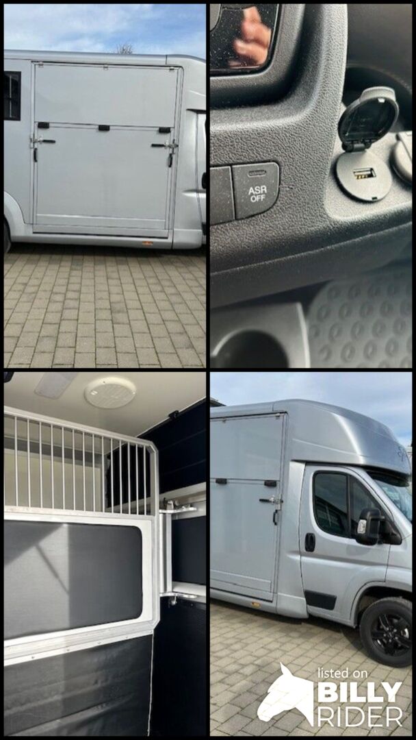 Przedział dla koni: * Nadwozie typu "Stephex * KOMPLETNE WYPOSAŻENIE DLA KONI z wysoką ścianką działową, oddzielne drzwi przed każdym przedziałem dla koni koń * Ścianka działowa w pełni regulowana dla np. klaczy + źrebaka * Wentylator dachowy * Wyłaz dachowy * Oświetlenie LED dzień/noc * Zamknięte schowki w alkowie * Uchwyt na siodło i uzdę * Schowek na siodło i uzdy * System kamer, kamera cofania i monitorowania koni * Opony całoroczne na czarnych felgach aluminiowych! *Dostępny od zaraz *Oglądanie możliwe tylko po wcześniejszym umówieniu *Cena 55 900 € plus 19% VAT *Cena brutto wynosi 66 521 € VAT może być pokazany dla nabywców komercyjnych *Zapytania pod adresem 01606106131---00491606106131