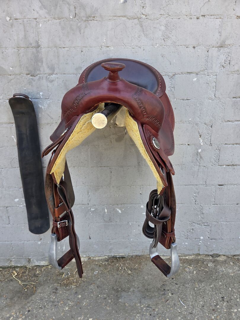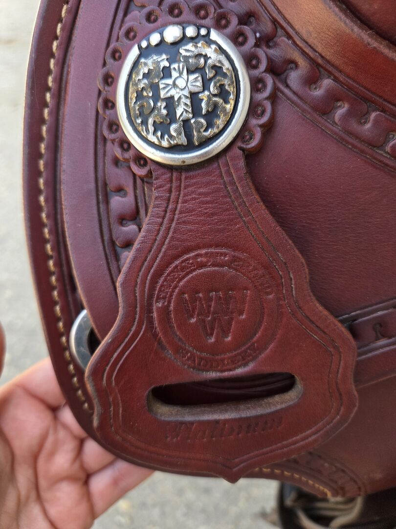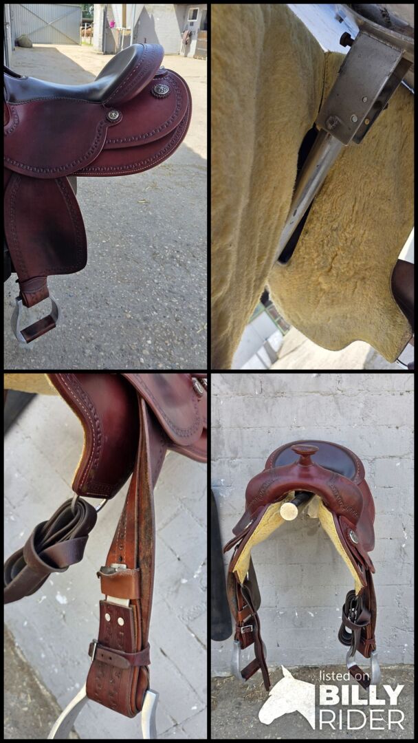 Witam!!! Ponieważ Stuti nie nadaje się już do jazdy ze względu na wiek i chorobę zwyrodnieniową stawów, sprzedaję Triple W Platinum w kolorze kasztanowym z brązowym siedziskiem z gładkiej skóry. BT Allround to drzewo 1031 FQH z owczą skórą pod spodem. Siedzisko ma podwójną tapicerkę, dzięki czemu jest bardzo wygodne. Rozmiar siedziska to klasyczne 16".