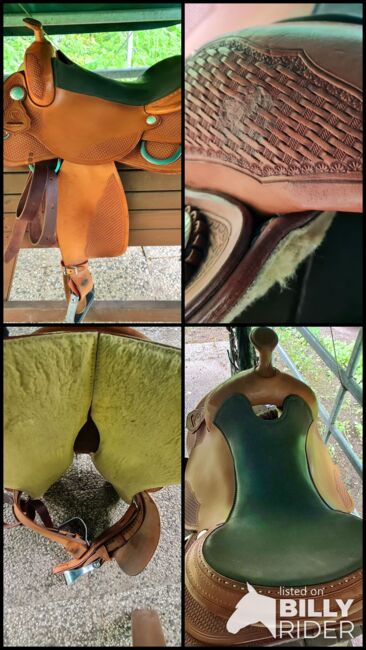 Wymiary można zobaczyć na zdjęciach. Siodło było używane na sportowym Haflingerze z niewielkim huśtawką.