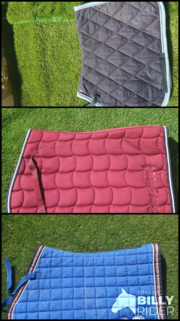 Trzy podkładki pod siodło VS - W związku z przejściem na ujeżdżenie oferuję trzy podkładki pod siodło VS. Podkładka pod siodło Eskadron niebieska 20€ Podkładka pod siodło Loesdau bordeaux 25€ (1×używana) Podkładka pod siodło niebieska z dżetami dla konia 15€. Wszystkie trzy jako pakiet oddałbym za 50€. Plus wysyłka