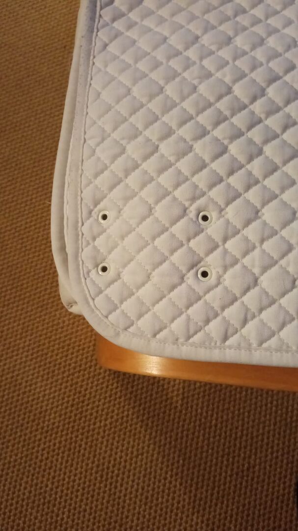 Turnierschabracke, klasyczna bawełna, Dressur - Sprzedam klasyczną białą podkładkę pod siodło konkursowe firmy Kavalkade. Podkładka pod siodło ma po obu stronach oczka z numerem startowym, tak jak podkładka pod siodło konkursowe Equest. Jest w bardzo dobrym i czystym stanie.