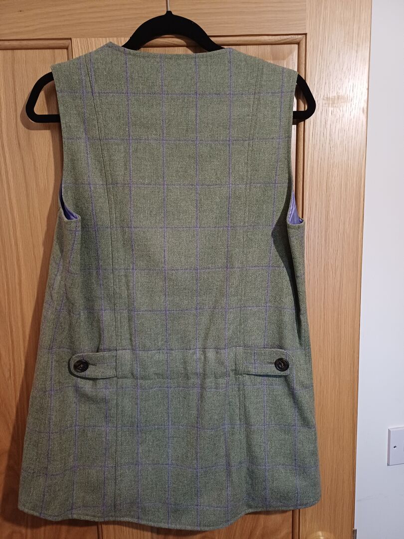 This Really Wild women's waistcoat has never been worn. The tweed is light green with a light purple hatch.