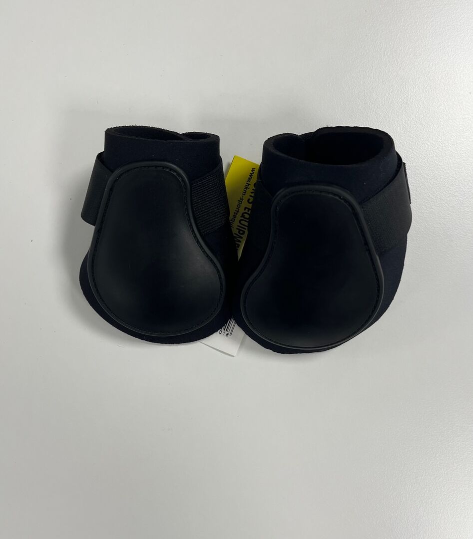 Tylne getry - Buty jeździeckie w kolorze czarnym, z praktycznym zapięciem na rzep i miękkim neoprenem wewnątrz. Zewnętrzna osłona wykonana jest z twardego plastiku.