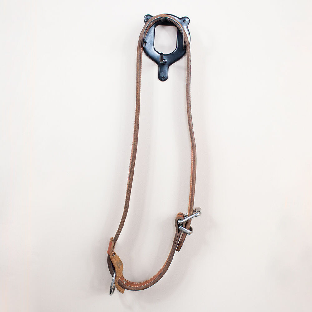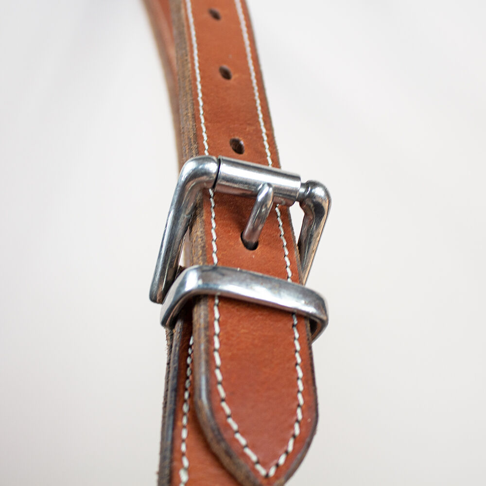 Tytoń - skórzany pasek na szyję Loesdau - Ten piękny skórzany pasek na szyję od Loesdau dla koni ciepłokrwistych jest doskonałą alternatywą dla haltera. Gruba skóra jest wyjątkowo wytrzymała i trwała. Posiada klamrę z kolcami i metalowy pierścień. Pasek na szyję nosi niewielkie ślady użytkowania i jest jak nowy. Ma długość od 90 cm do 105 cm i szerokość ok. 3 cm. To the seller's offerlaunch