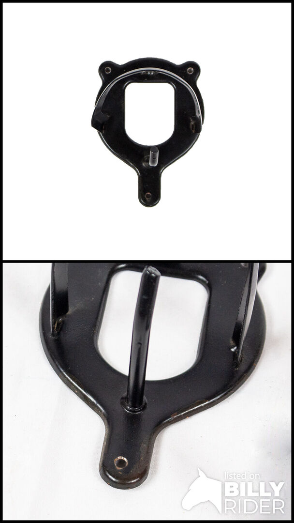 Uchwyt na uzdę metalowy czarny - Klasyczny uchwyt na uzdę wykonany z metalu w kolorze czarnym jest idealnym uchwytem na kantary, uzdy i uzdy podwójne. Dzięki nim pomieszczenie, w którym stoi wózek lub kabina, staje się bardziej uporządkowane. Posiadają niewielkie ślady rdzy i ogólne ślady użytkowania. To the seller's offerlaunch
