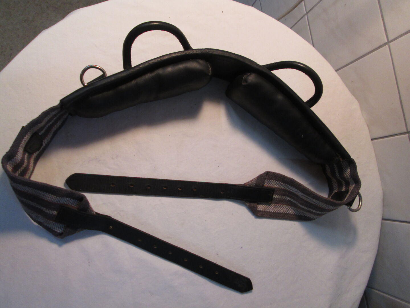 Uprząż do lonżowania Uprząż do skakania po sklepieniu 2 uchwyty - Na sprzedaż jest pas do lonżowania / pomoc jeździecka z 2 uchwytami. Zawsze używałam pasa brzusznego z normalnymi pasami, więc pasował on również na mojego dużego konia.