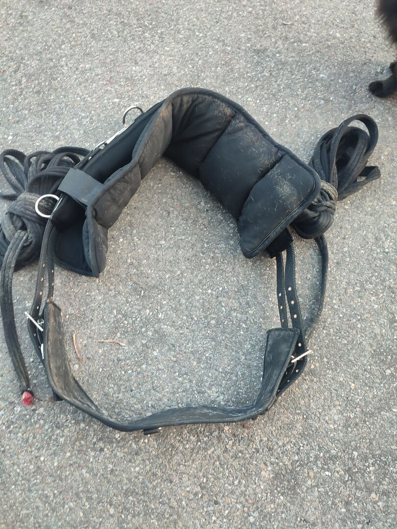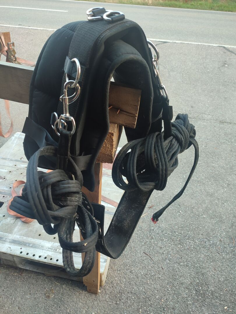 Uprząż do lonżowania z podwójną lonżą gr Cob - Bardzo ładny pas do lonżowania z miękką wyściółką, którą można zdjąć. Świeżo umyta, niestety nie mogę wyciągnąć włosów do końca. Podwójna lonża jest wliczona w cenę. Wysyłka byłaby możliwa, jeśli pokryję koszty wysyłki Preferowany PayPal