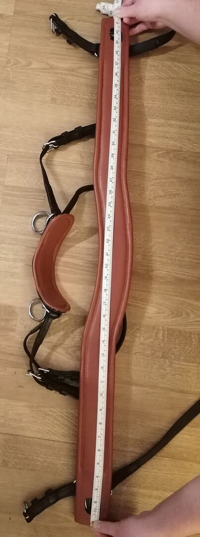 Uprząż wózka dwa w ręku Shetty - Oferuję elegancką dwukonną uprząż w rozmiarze Shetty. Kolor czarny z brązową podszewką.