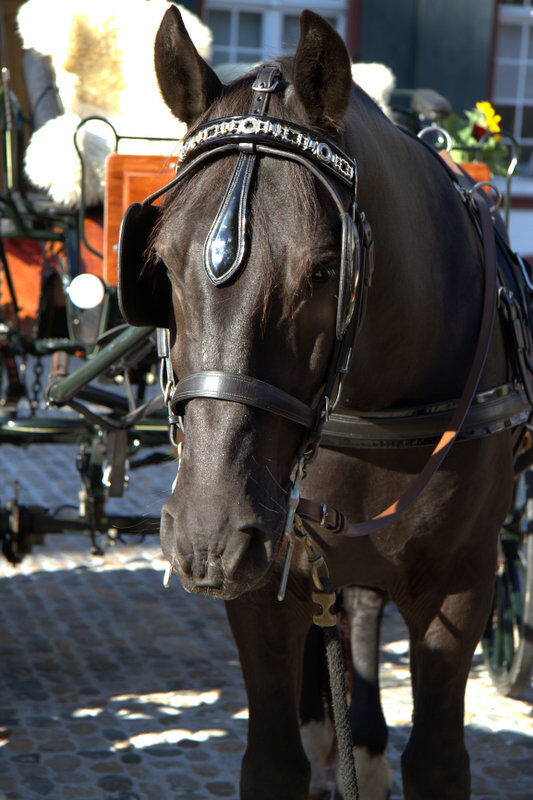 Uprząż z napierśnikiem dla jednego konia - Na sprzedaż wysokiej jakości uprząż z napierśnikiem dla jednego konia z wieloma zdobieniami. Napierśnik i popręg podszyte skórą lakierowaną. Zawiera naczółek, wędzidło i smycze, a także paski do pochwy i ucha do przenoszenia do wymiany oraz adapter z hakami bezpieczeństwa do linek pociągowych.