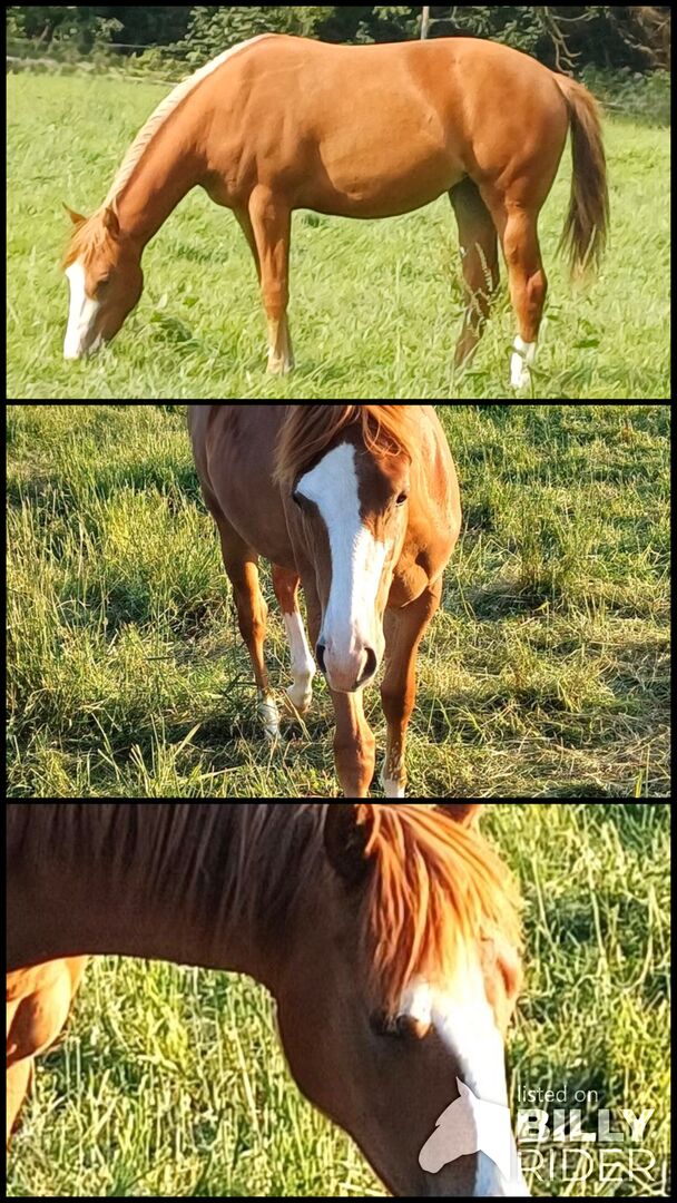 Urocza klacz rasy Quarter Horse o czystej głowie i silnym usposobieniu - Lokalizacja: 38678 Clausthal-Zellerfeld UG Codys Sweet Deal - ładna, prawidłowo zbudowana klacz rasy Quarter Horse w klasycznym kolorze szczawiu, urodzona 25 lipca 2024 r. Przy szacowanym ostatecznym wzroście od ok. 150 do 152 cm ma zwartą, stabilną sylwetkę i bardzo harmonijne proporcje - najlepsze warunki do sportu i rekreacji. Będzie dorastać w odpowiednim dla gatunku środowisku z rówieśnikami, będzie regularnie obsługiwana i będzie mogła dorastać w spokojnym, przyjaznym dla koni środowisku. Jest zadbana pod względem zdrowotnym: regularnie odrobaczana, szczepiona stosownie do wieku i genetycznie 5-panelowa n/n po rodzicach. Cody jest przyjazna, zorientowana na ludzi i ciekawa, na początku trochę ostrożna, ale zawsze uważna i chętna do nauki. Jest nieskomplikowana, dobrze wychowana, zna układ źrebię-1x1 i jest wyszkolona w pracy w ręku. Jej przystępna, chętna do współpracy natura sprawia, że jest młodym koniem z dużym potencjałem rozwoju. Dzięki wysokiej jakości reiningowi i wszechstronnemu rodowodowi, UG Cody's Sweet Deal oferuje solidne podstawy do przyszłej kariery w skokach przez przeszkody - nadaje się również do szerokiej gamy zajęć rekreacyjnych. Młody koń o wspaniałym charakterze, jasnym usposobieniu i obiecujących podstawach na przyszłość.