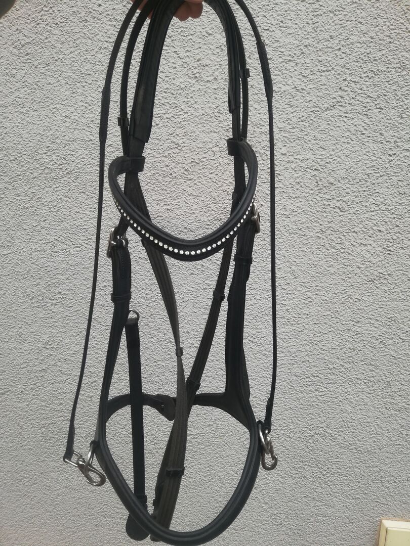 USG Bitless Snaffle jak nowy - Były tylko do przymierzenia na konia, więc jak nowe. NP 119 Euro Piękna uzda wykonana z bardzo ładnej skóry i błyszczącego paska na brwi. Sprzedaż prywatna bez wymiany Cena obejmuje wysyłkę