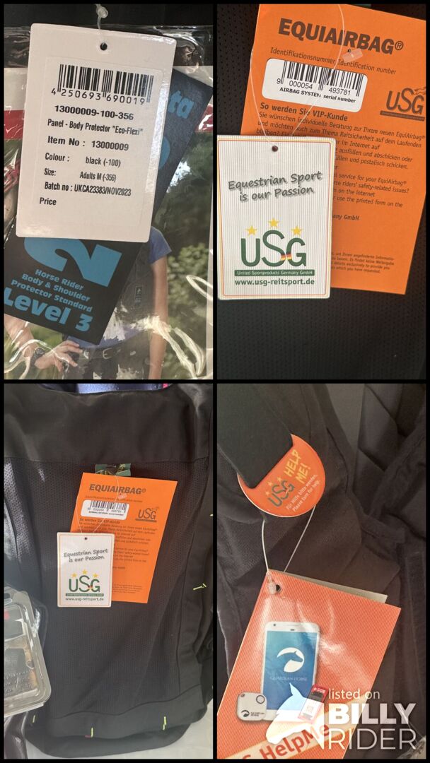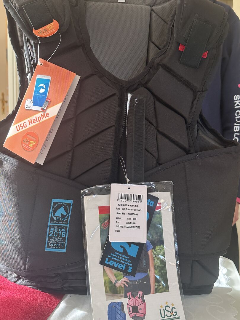 Na sprzedaż jest kombinacja ochraniacza USG EquiAirbag i kamizelki chroniącej plecy Eco Flexi Panel firmy USG.