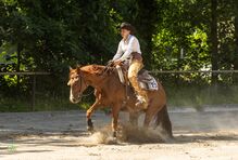 Utalentowany wałach rasy Quarter Horse z treningiem reiningu - Lokalizacja: 76356 Weingarten GNR Rooster Cielos, urodzony w kwietniu 2017 roku, to piękny wałach rasy Quarter Horse w kolorze Sorrel o wzroście ok. 150 cm. Jest prawidłowo zbudowany, zwarty i imponuje pierwszorzędnym rodowodem reiningowym oraz solidnym wyszkoleniem. Cielo ma niezwykle przyjazny i zorientowany na ludzi charakter. Jest kompatybilny ze stadami, towarzyski i nieskomplikowany, i jest niezwykle przyjemny w mieszanych stadach, a także w boksach z wybiegami lub na pastwisku. Jest bardzo miły, spokojny, towarzyski i nie ma złych nawyków. Wałach jest podkuwany, regularnie szczepiony i odrobaczany. GNR Rooster Cielos dobrze czuje się pod siodłem, jest chętny do nauki i utalentowany. Opanował manewry reiningowe, takie jak zatrzymanie, obrót i cofanie, i już ćwiczy zmiany w locie. Jest zawsze spokojny i niezawodny w terenie, a także opanował swoje pierwsze doświadczenia z bydłem. Cielo był już z powodzeniem wystawiany na pokazach. Od czasu do czasu wykazuje lekką wrażliwość w kłusie, gdy jest zbyt mocno naciskany, a następnie reaguje kilkoma szybszymi krokami do przodu, ale przez cały czas pozostaje pod kontrolą i nie ucieka. Z tego powodu wałach nie jest koniem dla początkujących, ale idealnym dla doświadczonych jeźdźców, którzy chcą rozwijać jego talenty w ukierunkowany sposób. GNR Rooster Cielos był profesjonalnie ujeżdżany przez dwa lata i jest bardzo dobrze wyszkolony. Niestety, w ostatnich miesiącach nie był zbyt często jeżdżony z powodu braku czasu i wymaga ponownego treningu. Z tyłu po lewej stronie znajduje się niewielka spavin