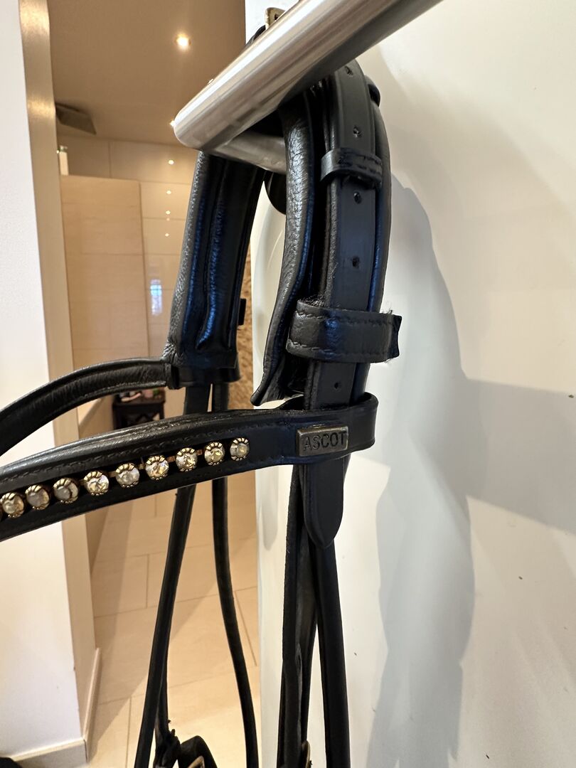 Uzda Ascot WB z zapięciem na szyję - Sprzedaję mój szwedzki kombinowany snaffle od Ascot w rozmiarze WB z opaską z kryształu górskiego.