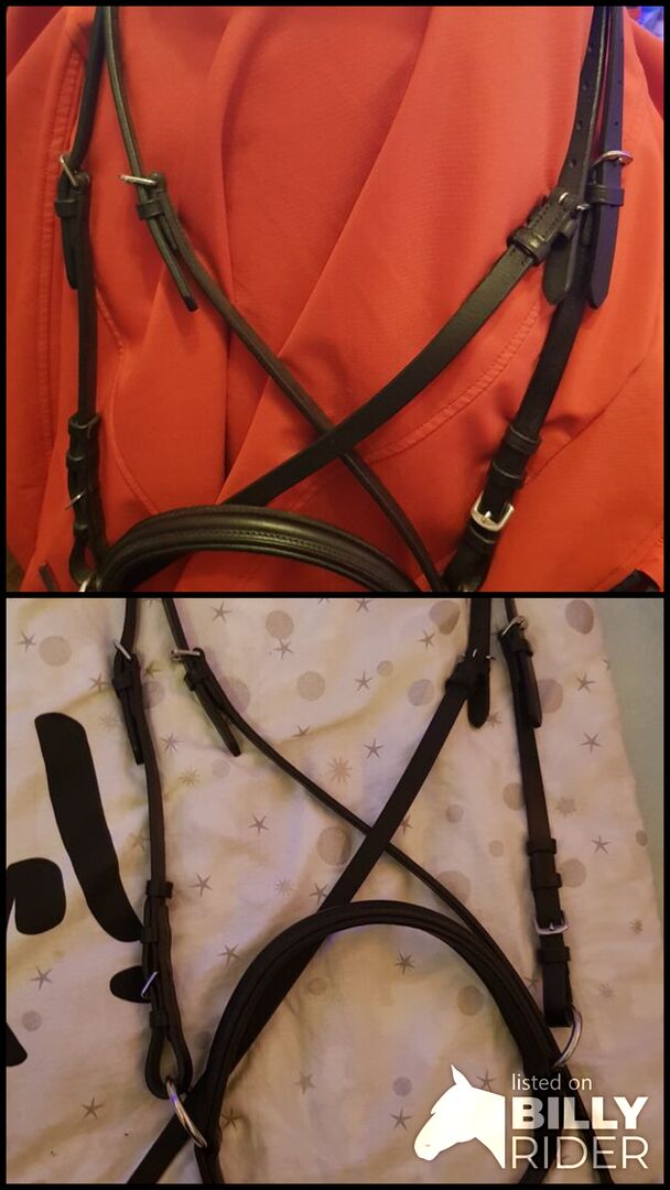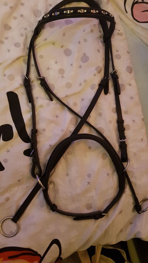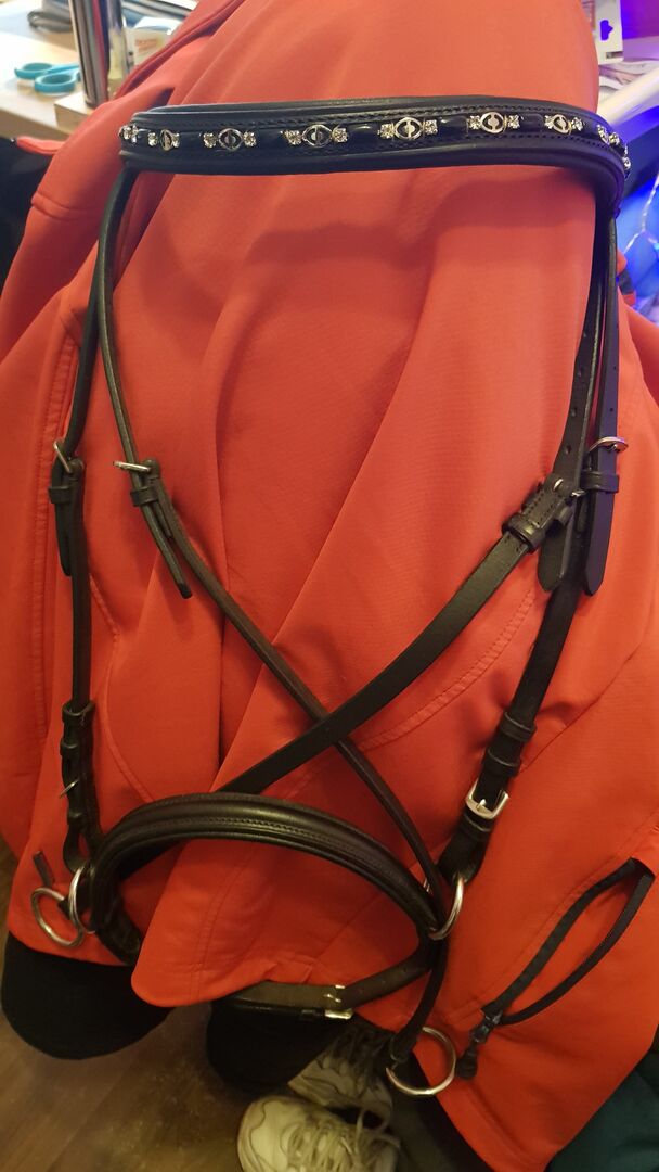 Uzda bez bitu Harmony - kompletna uzda bez bitu wykonane z miękkiej skóry wysokiej jakości z miękko wyściełanym noskiem i opaską na czoło z okuciami ze stali nierdzewnej w kolorze srebrnym szlachetna opaska na czoło ozdobiona perłami