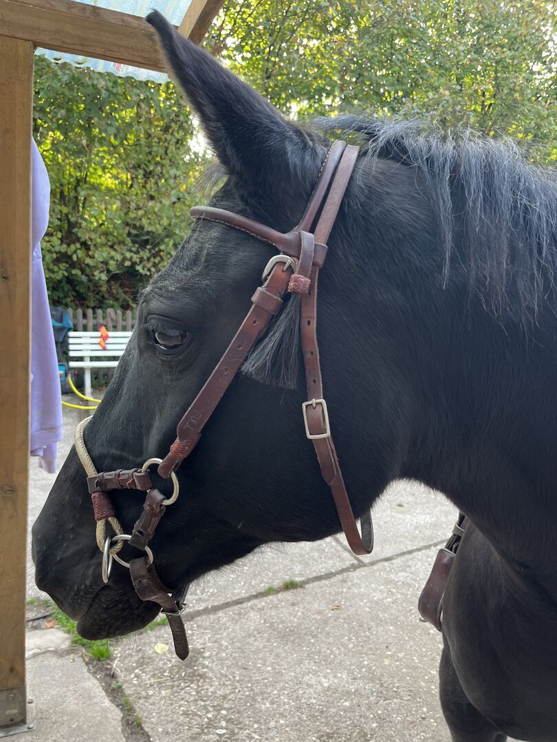 Uzda bezgryzakowa Sidepull Snaffle Bridle - Używany z przyjemnością, pojedyncza lina. Noszony przez Hafiego i Quartera, dobrze regulowany i dlatego pasuje również do WB. Rozmiar Full.