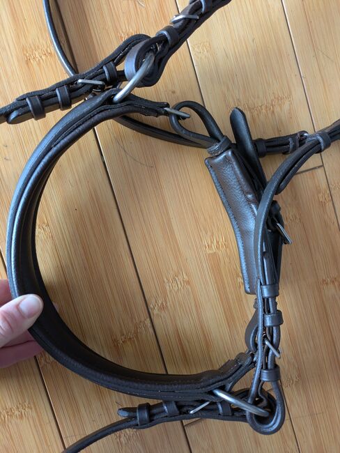 Uzda bezzębna, uzda. crownclub, brązowy, sidepull - Ergonomiczny naczółek. Mało używana uzda bezgryzowa. Stan bardzo dobry jak na zdjęciach. Została świeżo wyczyszczona i nasmarowana. Jest w kolorze ciemnobrązowym, dlatego chciałabym ją sprzedać.