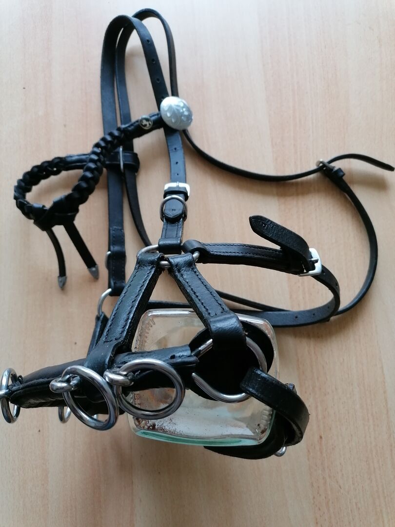Uzda Cavesson, western, uwiąz, lonżowanie, pasek na nos, skóra, rozmiar kucyka - Western Cavesson / Headstall / nigdy nie używany Rozmiar: kucyk przód: 35cm Część nosowa: 24cm Pasek podbródkowy: 28cm plus pierścień 5cm (łącznie: MAX: 57cm obwodu nosa) Pasek do gardła max. 105cm Obwód do części nosowej max. 90cm Część szczękowa max. 39cm Więcej informacji i/lub zdjęć proszę napisać wiadomość. Możliwa wysyłka za zaliczeniem pocztowym, również za granicę. Sprzedaż prywatna, dlatego nie ma możliwości wymiany, zwrotu lub gwarancji.