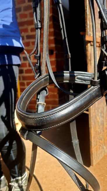 Uzda dla konia - Sprzedaję bardzo ładną uzdę pełnej krwi angielskiej w kolorze czarnym z błyszczącą opaską z kryształu górskiego. Uzda była używana tylko raz i dlatego jest w niemal idealnym stanie.