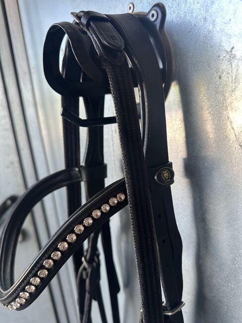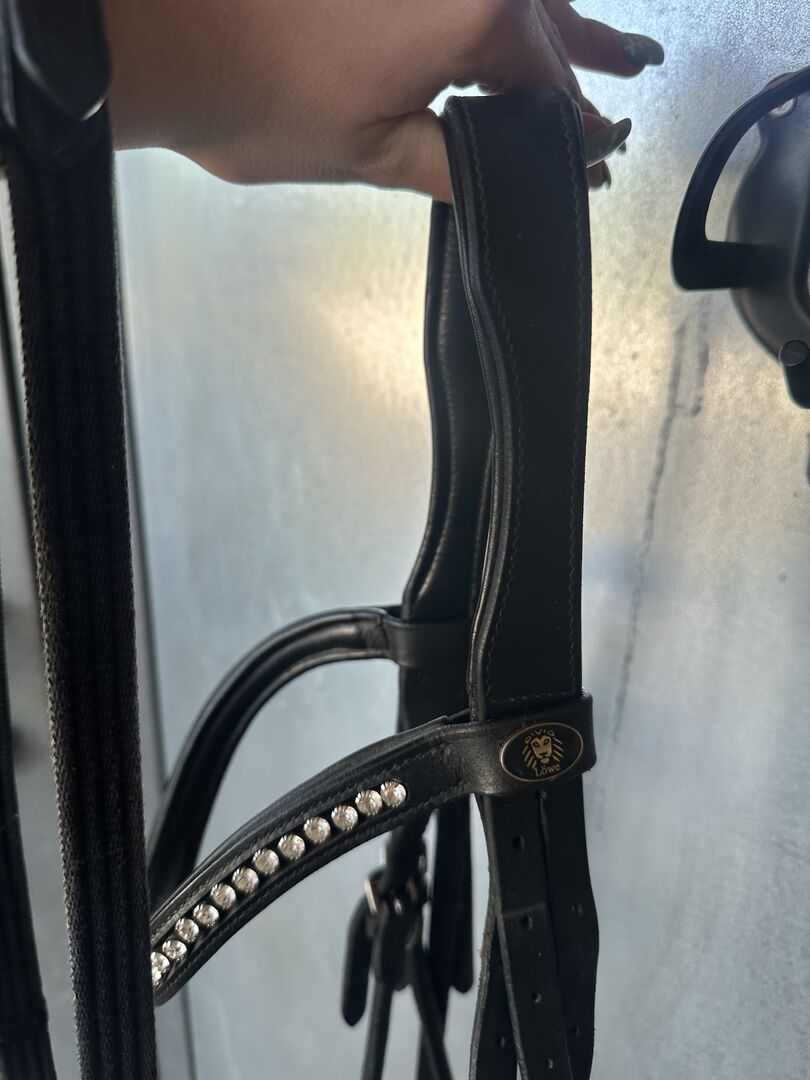 Uzda dla konia od Löwe - - Warmblood - Anatomiczny czubek głowy - wodze w zestawie - Nowy karabińczyk Uzdę kupiłam z drugiej ręki, ale jest w bardzo dobrym stanie. Została wyczyszczona i nasmarowana.